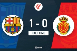 半场-莱万补射破门亚马尔错失空门机会 巴萨1-0领先马洛卡