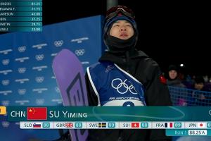 体育资讯02月08日讯 米兰冬奥会单板滑雪男子大跳台决赛,苏翊鸣第九个出场。