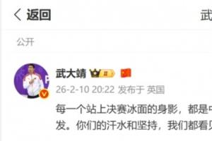 前短道速滑运动员武大靖发布社媒鼓励中国队:每一个站上决赛冰面的身影,都是中国的骄傲。短道速滑没有终点,只有下一次出发。你们的汗水和坚持,我们都看见了。继续冲,我们下个赛场见!