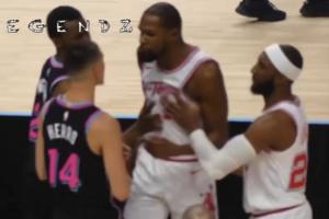 距离首节结束还剩5分钟时,热火就开始包夹杜兰特,希罗这时候就开始喷垃圾话。