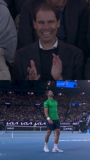 体育资讯02月01日讯 2026年澳网男单决赛,阿尔卡拉斯vs德约科维奇的比赛正在进行中,纳达尔也来到现场观看本场比赛。