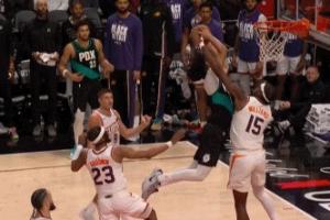 GIF-赛季最炸裂扣篮!夏普超远滑翔拉杆,隔着2米16马威折叠暴扣!