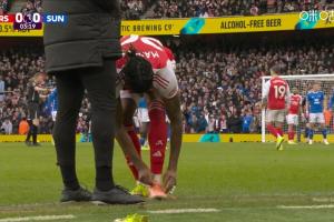 体育资讯02月07日讯 英超第25轮,阿森纳vs桑德兰。比赛开场仅3分钟,马杜埃凯被拍到在场边换鞋,他将左脚的一只鞋换成了另一个配色的F50。