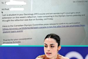 体育资讯02月09日讯 昨天加拿大花样滑冰运动员马德琳·希扎斯在社媒晒出了一封申请信,写给她的大学教授,希望能够延期提交作业。