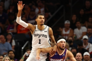 布克说道:“他真的很出色。我非常尊重他,我一直都在关注马刺的比赛。他在攻防两端都有出色表现,充满活力且运动能力出众。他是一个竞争者,所以我对像他这样打球的球员充满敬意。”