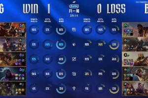 BLG在24分钟推掉JDG下路高地,当时的人头比为11:3;之后第25分钟BLG在蓝buff野区被JDG打出一波完美团吹响翻盘号角,BLG在后续比赛的15分钟内一个人头没拿到,最终比赛在39分钟结束。