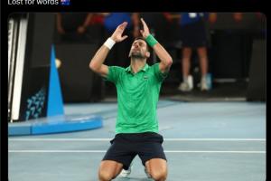 德约赛后发社媒晒跪地照片,并配文:无法用语言来形容。
