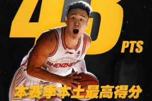 贺希宁本场状态神勇,进攻端几乎无所不能,出场35分钟,26中14,三分13中6,罚球11中9,爆砍生涯第二高分的43分(生涯最高分44分),外加4板2助3断。